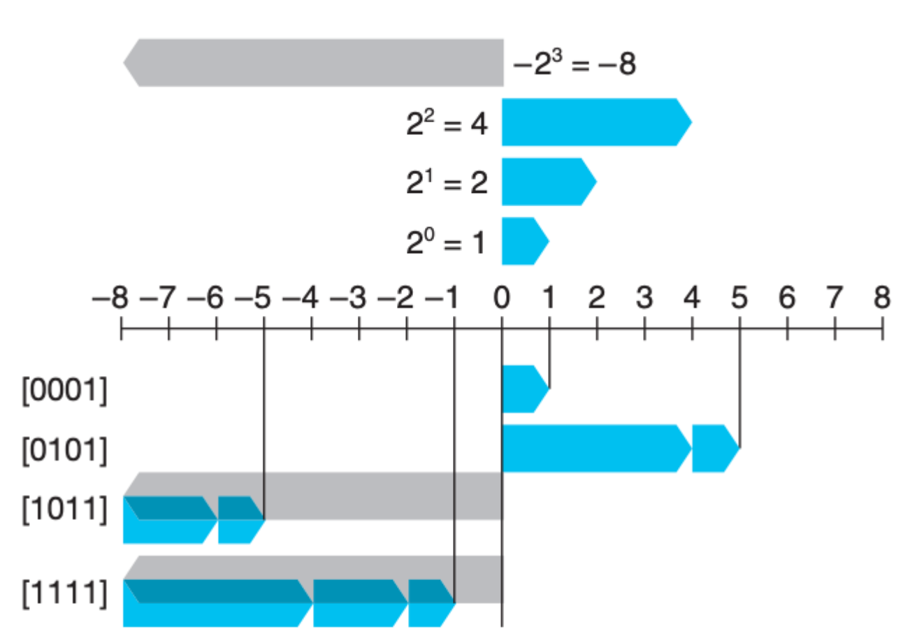 - The most significant bit (MSB) is interpreted as having a negative weight